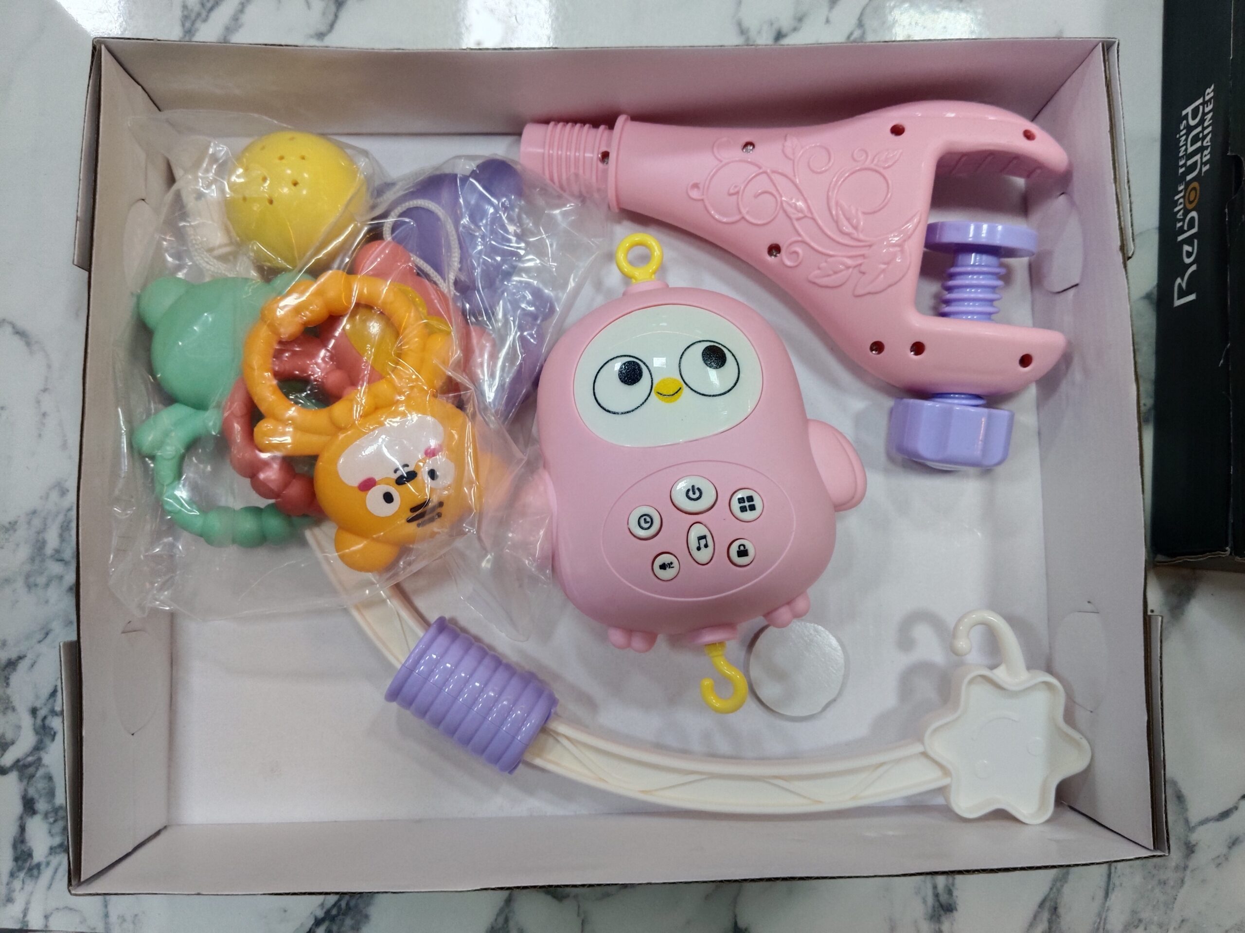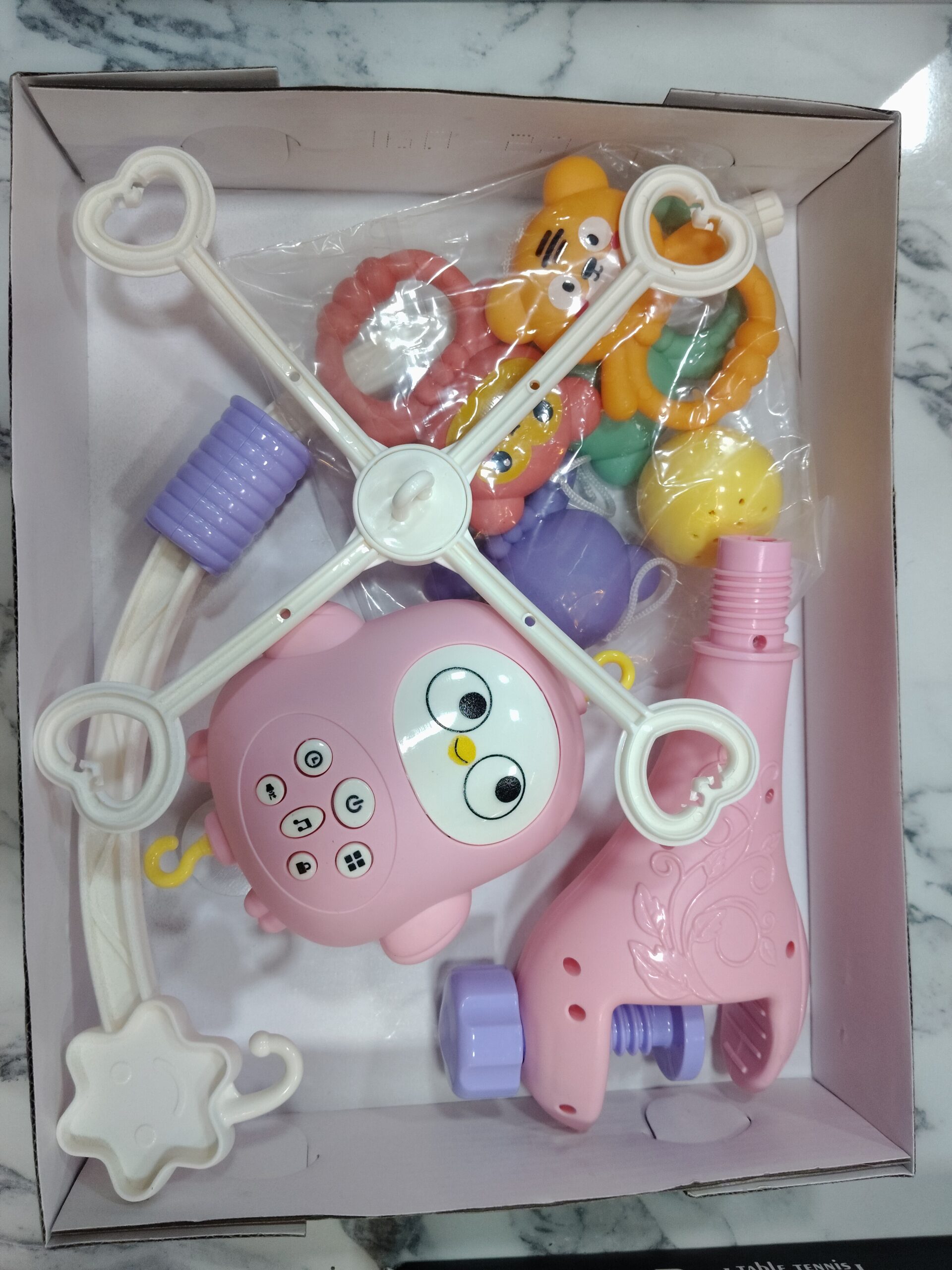 🧸 5 Detachable Rattles – Cute animal characters double as hand-held rattles for playtime