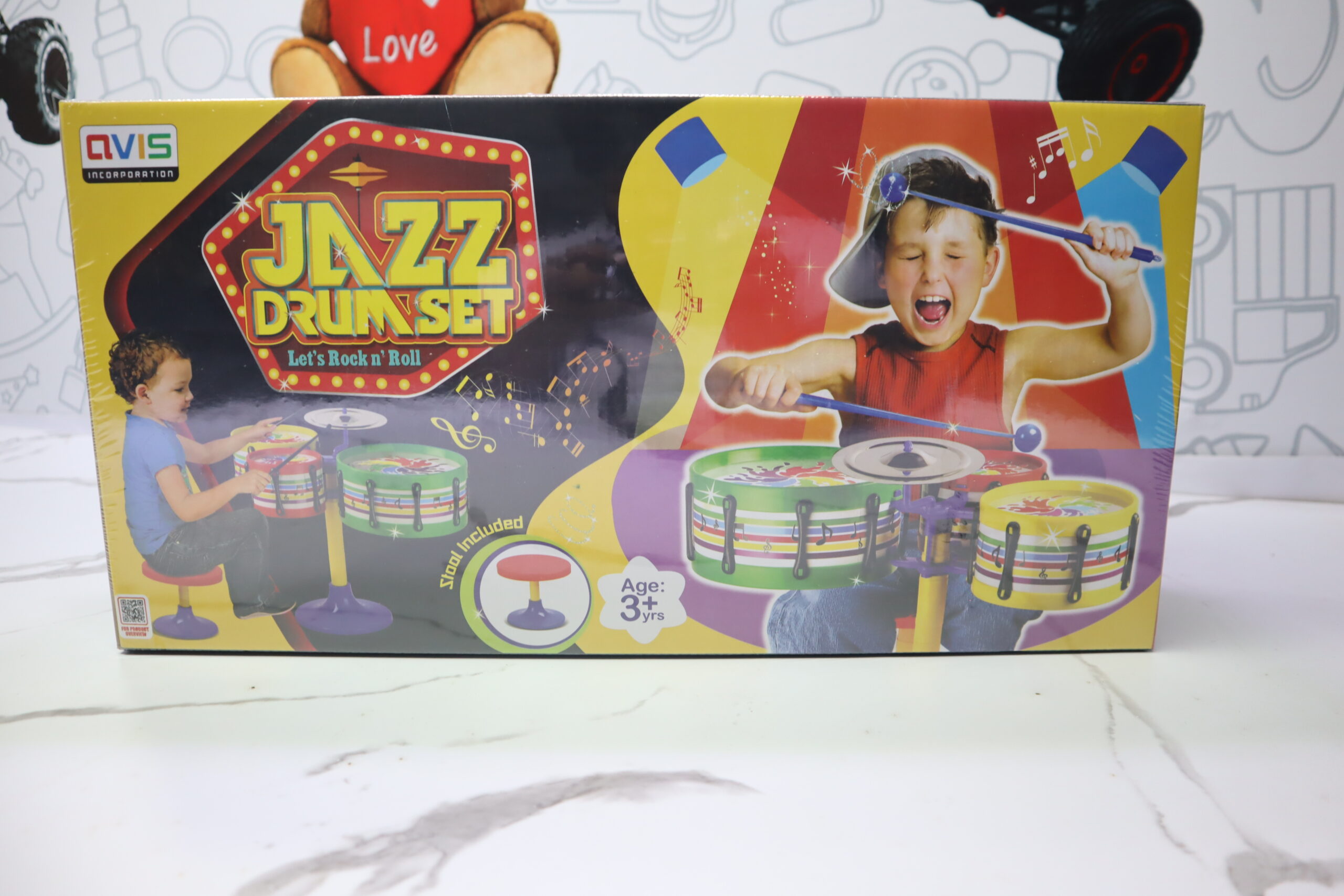 Turn up the fun and let your child rock out with the Avis Jazz Drum Set with Stool – where music, play, and imagination come together!