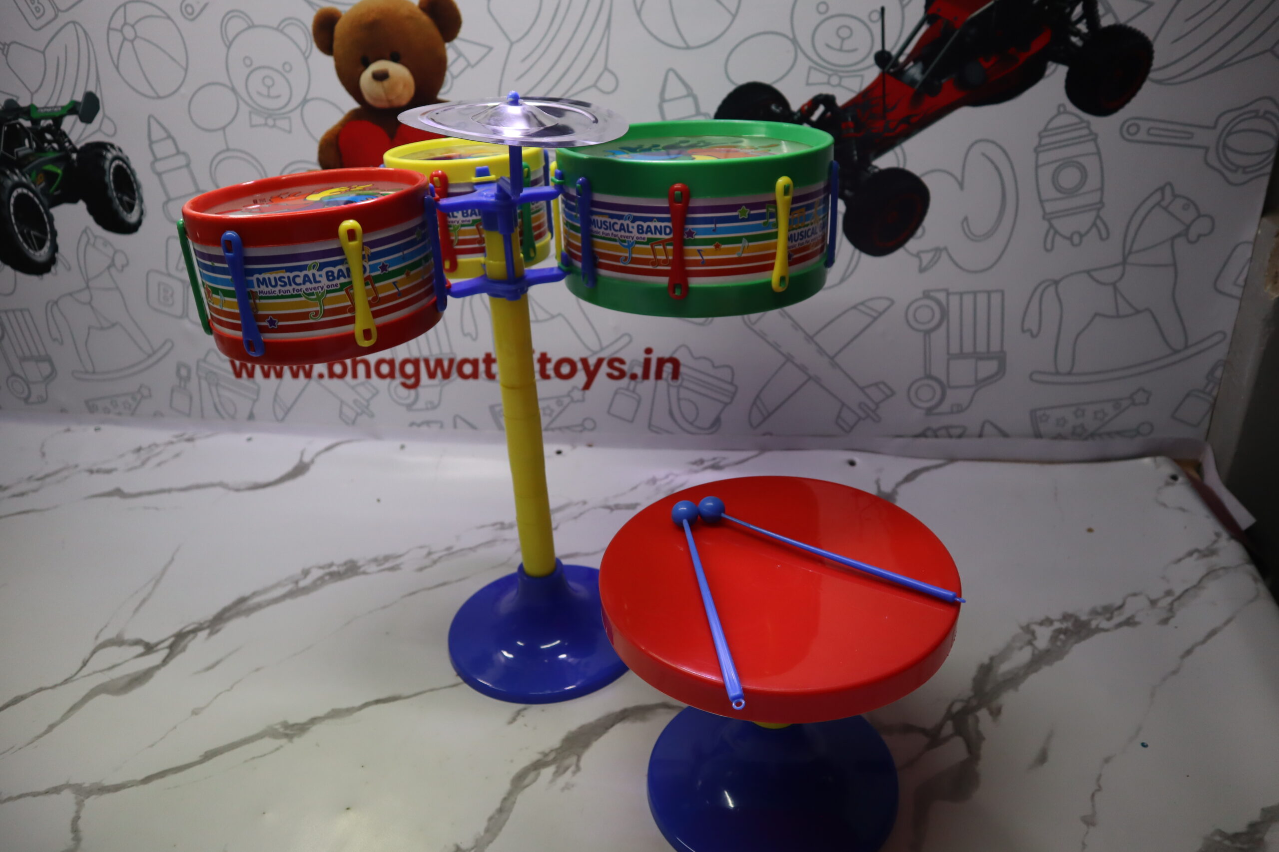 - Complete Junior Drum Kit: Includes multiple drum pads, cymbals, and drumsticks