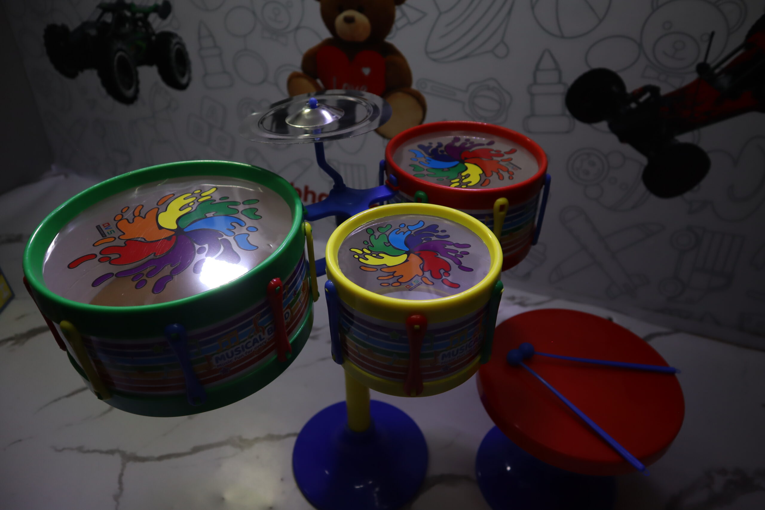 - Realistic Drumming Sounds: Encourages musical learning and rhythmic play