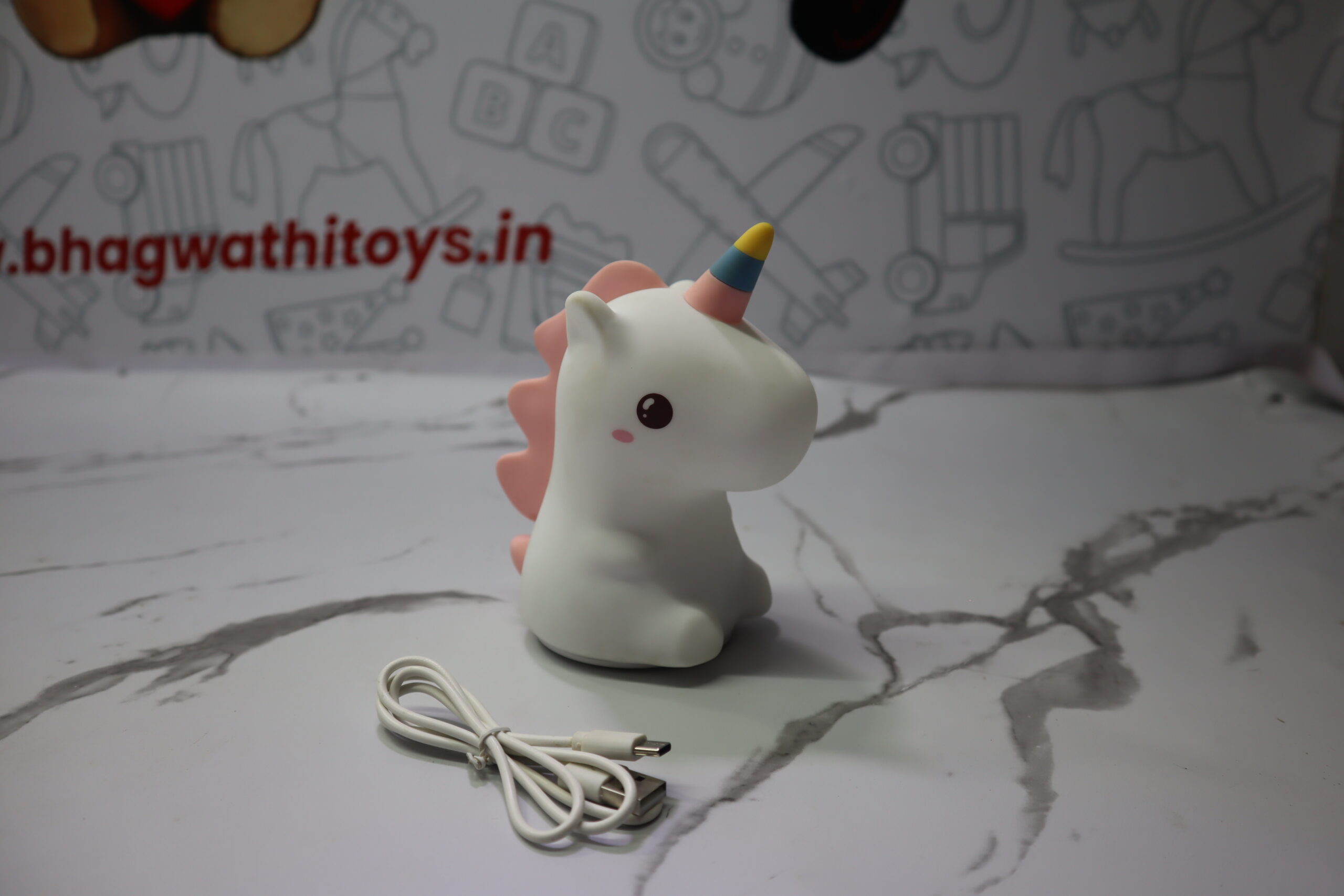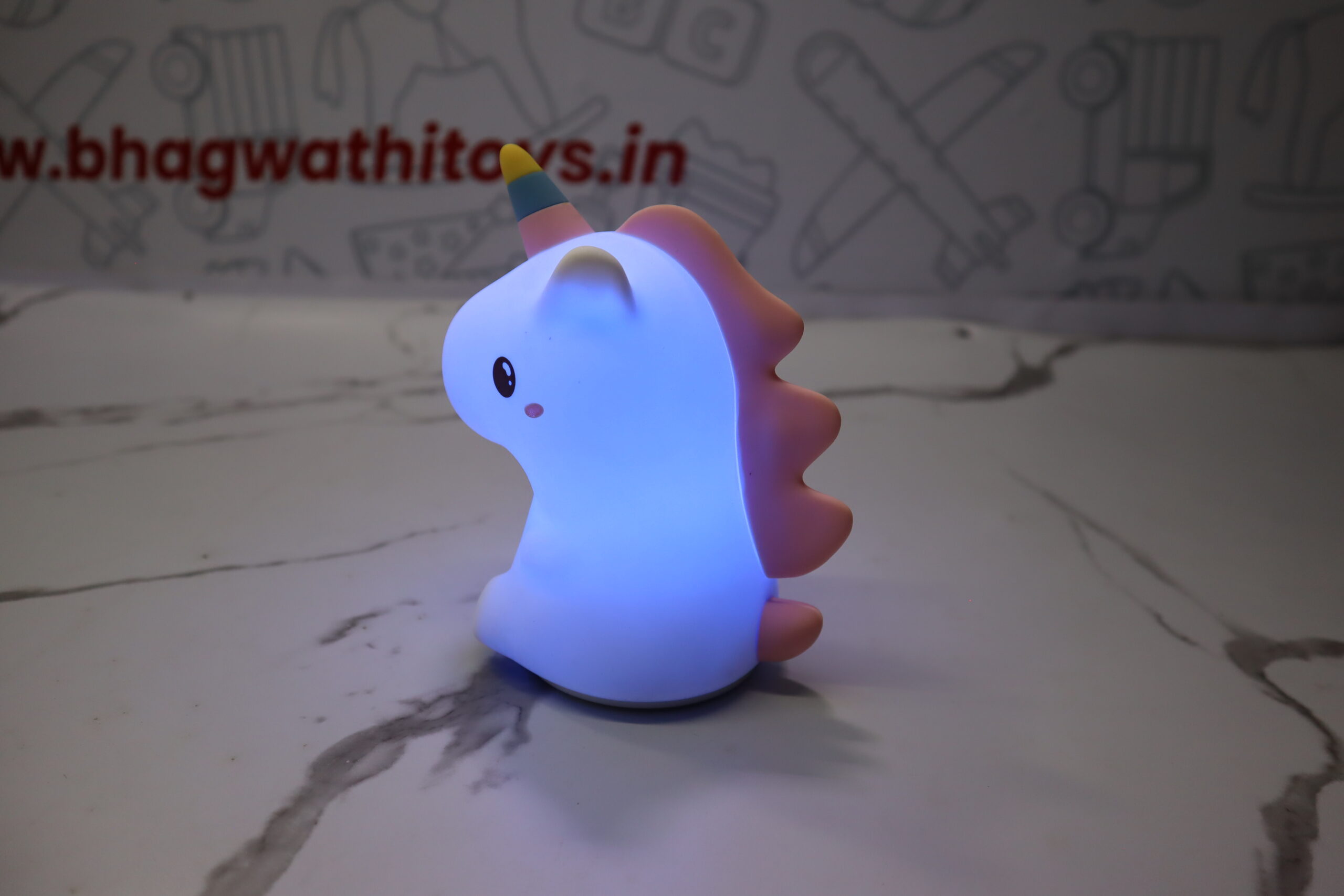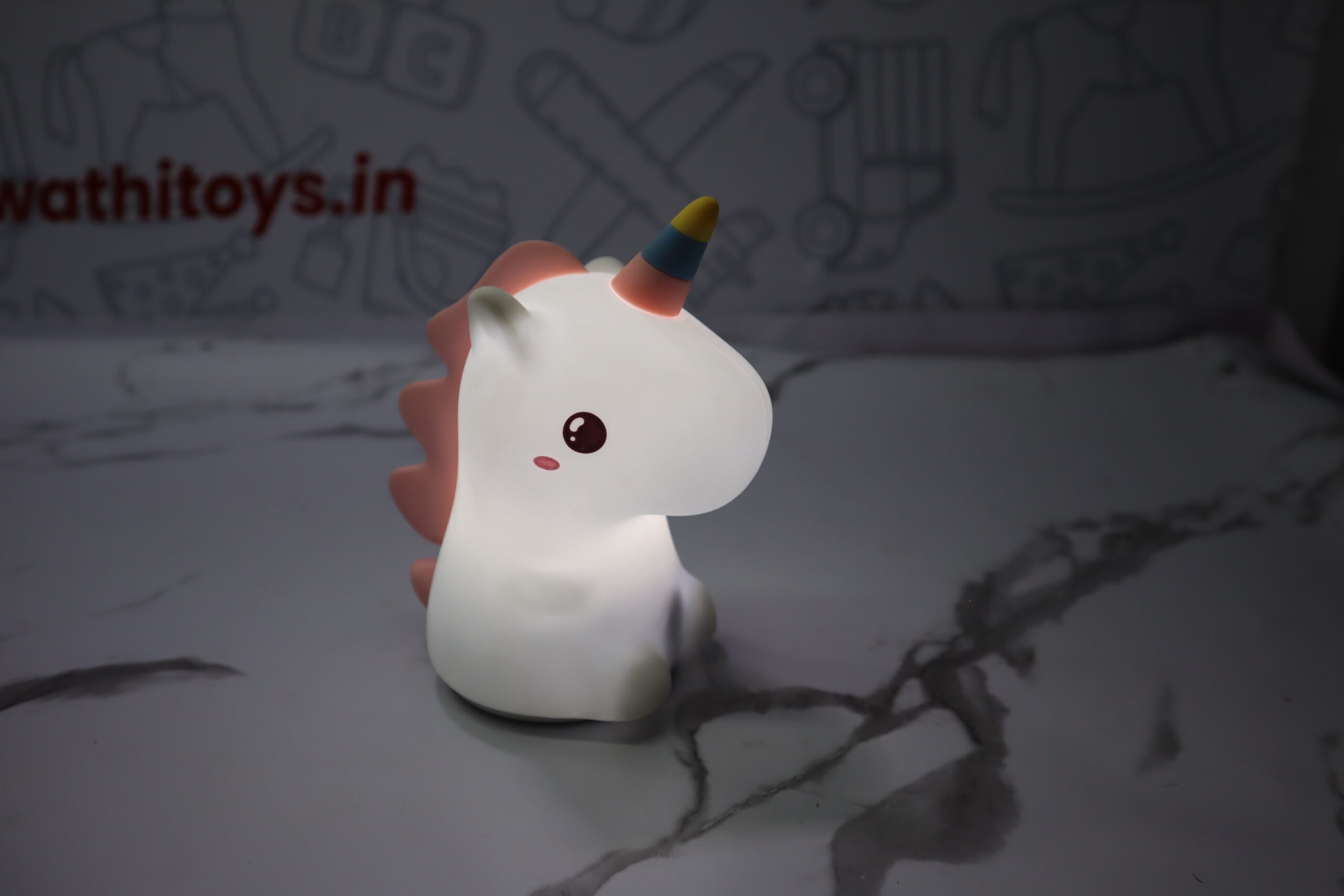 🌈 Rainbow LED Lighting – Glows in a variety of soft, vibrant colors, providing a soothing and colorful nightlight effect.