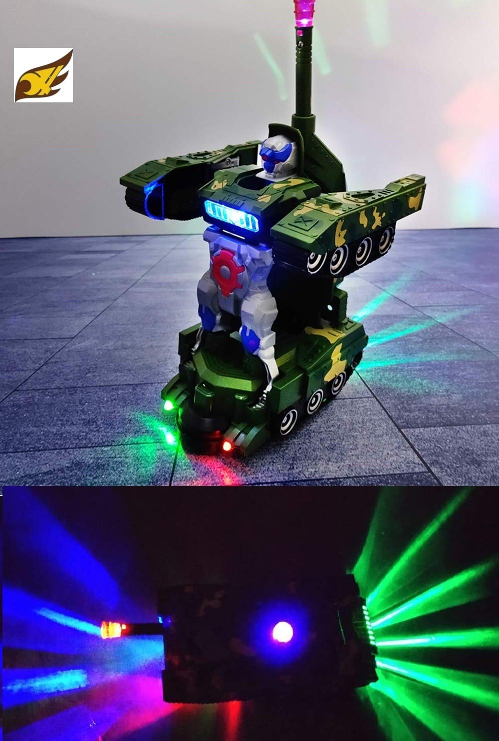 2 in 1 Automatically Tank to Robot Toy with Light, Music and Bump Function